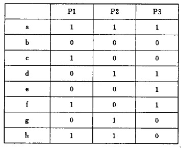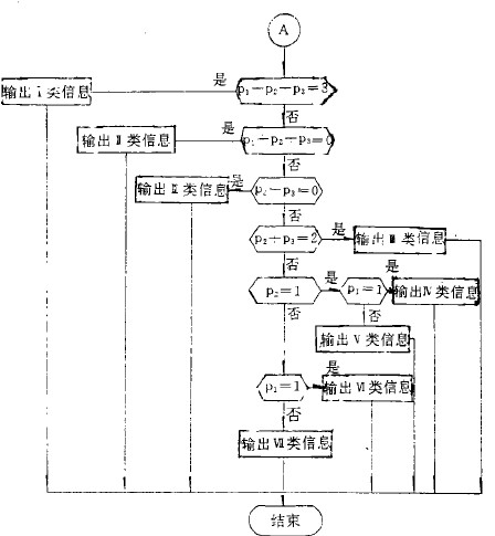 標(biāo)準(zhǔn)判定軟件的程序框圖如圖6 和圖7 所示。圖中的PI 、 PZ 、 P3 分別是產(chǎn)品圖的環(huán)形結(jié)構(gòu), 槽形結(jié)構(gòu)和扣片(記號(hào)) 形結(jié)構(gòu)的標(biāo)準(zhǔn)特征值。如結(jié)構(gòu)尺寸判定為標(biāo)準(zhǔn), 則等于1 , 反之為0。 P 1 、 P2 和P3 的組合形式見表1 。