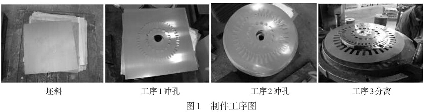 剪坯料(正方形)——轉子復沖——定子復沖——定、轉子分離。